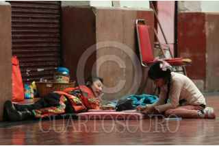 CIUDAD DE MÉXICO, 27AGOSTO2025.- Niños realizan su tarea en un pasillo de un edificio del Centro Histórico de la Ciudad de México. FOTO: GRACIELA LÓPEZ/CUARTOSCURO.COM