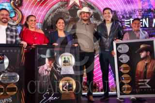 CIUDAD DE MÉXICO, 27 AGOSTO 2025.- Edén Muñoz, cantante de regional mexicano, en conferencia de prensa donde presentó su álbum "Piedras a la Luna", y recibió reconocimientos por sus producciones. FOTO: VICTORIA VALTIERRA / CUARTOSCURO.COM
