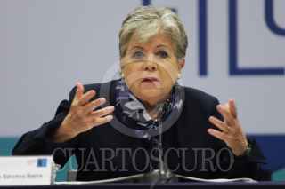 CIUDAD DE MÉXICO, 28AGOSTO2025.- José Alicia Bárcena, secretaria de Medio Ambiente de México, visitó la Feria Internacional del Libro de las Universitarias y los Universitarios (FILUNI) para realizar el Conversatorio Chile y México: democracia, derechos humanos y defensa del medio ambiente. FOTO: DANIEL AUGUSTO/ CUARTOSCURO.COM
