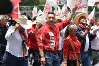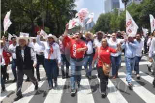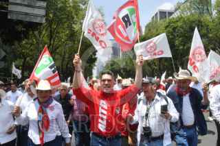 CIUDAD DE MÉXICO, 28 AGOSTO 2025.- Alejandro Moreno Cárdenas, senador y dirigente nacional del PRI, marchó de la Glorieta de la Diana Cazadora rumbo al Senado, acompañado por integrantes de la Confederación Nacional Campesina (CNC) y simpatizantes que lo respaldaron, luego del enfrentamiento registrado ayer con Gerardo Fernández Noroña, presidente de la Mesa Directiva de la Comisión Permanente. FOTO: MARIO JASSO / CUARTOSCURO.COM