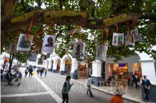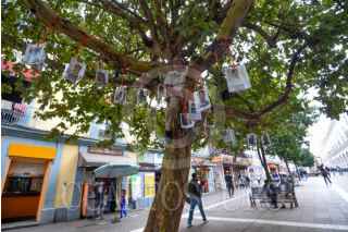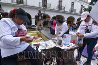 TOLUCA, ESTADO DE MÉXICO, 28AGOSTO2025.- Integrantes de la colectiva Memoria, Verdad y Justicia - Acapulco, la colectiva mexiquense Uniendo Esperanzas, en el marco del Día Internacional del Detenido-Desaparecidos impartieron el Taller Primeros Auxilios en la Desaparición Forzada en la ciudad de Toluca, también colgaron fichas de búsqueda en el árbol de las manitas que se encuentra en el andador Constitución de los Portales de Toluca. FOTO: CRISANTA ESPINOSA AGUILAR/CUARTOSCURO.COM