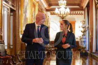 CIUDAD DE MÉXICO, 28AGOSTO2025.- Claudia Sheinbaum Pardo, Presidenta de México, se reunió con Gianni Infantino, presidente de la FIFA, para hablar sobre los preparativos de la próxima Copa Mundial de Fútbol, cuyo partido inaugural se jugará en el Estadio Azteca. FOTO: PRESIDENCIA/CUARTOSCURO.COM