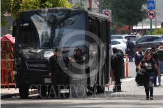 CIUDAD DE MÉXICO, 29AGOSTO2025.- Elementos de la Secretaría de Seguridad Ciudadana (SSC) así cómo Guardia Nacional mantienen un cerco de seguridad en las inmediaciones del Senado de la República en dónde el próximo 01 de septiembre las y los nuevos ministros de la Suprema Corte de Justicia de la Nación (SCJN) tomarán protesta. FOTO: GALO CAÑAS/CUARTOSCURO.COM