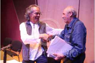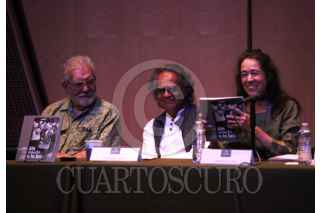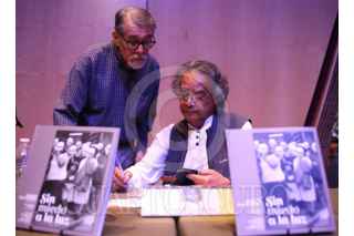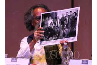 CUERNAVACA, MORELOS, 29AGOSTO2025.- El fotoperiodista Pedro Valtierra Ruvalcaba durante la presentación de su libro Sin miedo a la luz en la sala Manuel M Ponce del Jardín Borda. En la imagen, Pedro Valtierra sostiene una foto donde aparece entre fotógrafos como Héctor García, Walter Reuter, Oscar Menéndez y Paulina Lavista, tomada hace 41 años. FOTO: MARGARITO PERÉZ RETANA/CUARTOSCURO.COM
