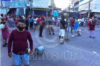 ACAPULCO, GUERRERO, 29AGOSTO2025.- Comerciantes del mercado Central de Acapulco realizaron un bloqueo en la avenida Cuauhtémoc, luego de un operativo que realizó la Policía Federal, Marina y Policías Estatales, en donde se llevaron a varios comerciantes detenidos, entre ellos menores de edad que hasta el momento no han sido presentados. Denunciaron que durante el operativo los elementos sustrajeron dinero y celulares de los negocios a los que ingresaron y tampoco presentaron alguna orden de cateo. Hasta el momento, ninguna autoridad ha dado información sobre el operativo y quienes son las personas detenidas. FOTO: CARLOS CARBAJAL/CUARTOSCURO.COM