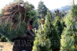 MÉXICO D.F. 21NOVIEMBRE2007.-35 campasinos de la comunidad San Miguel y Santo Tomas Ajusco, apoyados por la CONAFOR realizán el Centro Piloto de Árboles de Navidad ¨Lomas de Tepemecatl¨ , cuya activida es la producción de pino navideño, actualmente su producción se realiza en un area de 85 ectareas. FOTO: GUILLERMO PEREA/CUARTOSCURO.COM