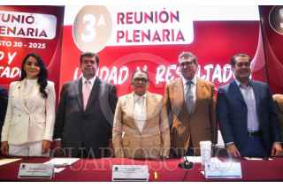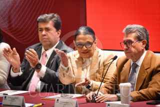 CIUDAD DE MÉXICO, 30AGOSTO2025.- Pedro Haces, diputado de Morena; Rosa Icela Rodríguez, secretaria de Gobernación y Ricardo Monreal, diputado y coordinador de Morena, durante la tercera reunión plenaria del Grupo Parlamentario de Morena llevada a cabo en el auditorio Aurora Jiménez del Recinto Legislativo de San Lázaro previo al nuevo periodo de sesiones de la LXVI Legislatura de la Cámara de Diputados que se llevará a cabo el próximo 1 de septiembre. FOTO: MARIO JASSO/CUARTOSCURO.COM
