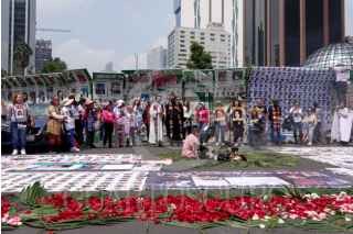 CIUDAD DE MÉXICO, 30AGOSTO2025.- Colectivos de familiares de desaparecidos realizaron una pega masiva de fichas de búsqueda y los rostros de sus seres queridos alrededor de la Glorieta de las y los Desaparecidos, como protesta por la falta de justicia y atención de las autoridades para encontrarles. Lo anterior, en el marco del Día Internacional de las Víctimas de Desapariciones Forzadas. FOTO: GALO CAÑAS/CUARTOSCURO.COM