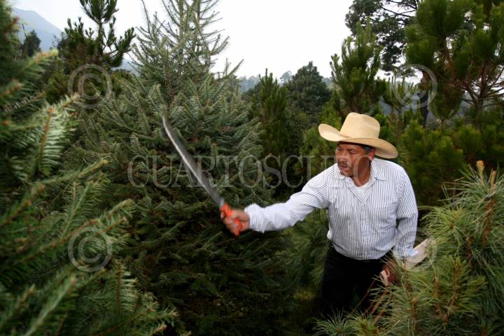 MÉXICO D.F. 21NOVIEMBRE2007.-35 campasinos de la comunidad San Miguel y Santo Tomas Ajusco, apoyados por la CONAFOR realizán el Centro Piloto de Árboles de Navidad ¨Lomas de Tepemecatl¨ , cuya activida es la producción de pino navideño, actualmente su producción se realiza en un area de 85 ectareas. FOTO: GUILLERMO PEREA/CUARTOSCURO.COM