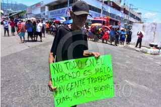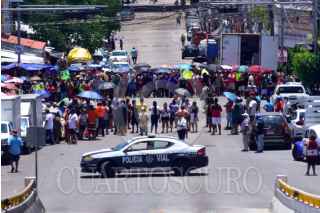 ACAPULCO, GUERRERO, 30AGOSTO2025.- Por segundo día consecutivo comerciantes del Mercado Central de Acapulco, realizaron un bloqueo a las avenidas Cuauhtémoc y Constituyentes en el Centro de Acapulco, queso para exigir la liberación de siete personas que fueron detenidas el día de ayer durante el operativo qué encabezaron agentes de la Secretaría Federal de Seguridad, con agentes de la marina y de la fiscalía del estado, los comerciantes denunciaron abuso de autoridad y del robo de celulares y de dinero durante el operativo gracias, qué fueron sustraídos por los elementos de seguridad de locales comerciales, también alegaron que los detenidos son personas inocentes que se dedican al trabajar en el mercado. FOTO: CARLOS ALBERTO CARBAJAL/CUARTOSCURO.COM