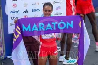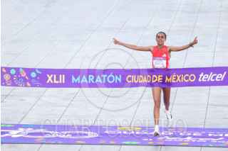 CIUDAD DE MÉXICO, 31AGOSTO2025.- Belekelech Gudeta Borecha, corredora de Etiopía, ganó en la rama femenil el Maratón de la Ciudad de México 2025. La corredora africana tuvo un tiempo de 02:28:36 al cruzar la meta en el Zócalo. FOTO: MOISÉS PABLO/CUARTOSCURO.COM
