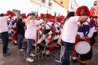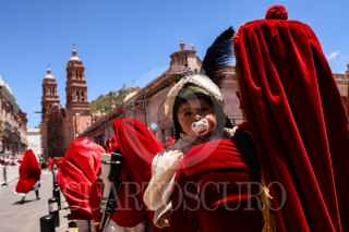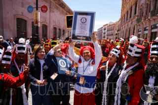 ZACATECAS, ZACATECAS, 31AGOSTO2025.- Con 17 mil 600 participantes, las Morismas de Bracho lograron el nuevo Récord Guiness, en la puesta en escena con más participantes a nivel mundial. Desde las nueve de la mañana las calles del centro histórico fue el escenario para que cada morismero fuera contado por los jueces, durante la marcha de los batallones Cristian y Moro, previo a los enfrentamientos a las faldas del cerro de Bracho. FOTO: ADOLFO VLADIMIR/ CURTOSCURO.COM