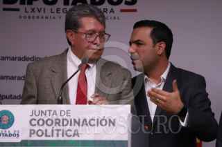 CIUDAD DE MÉXICO, 31AGOSTO2025.- Ricardo Monreal, presidente de la Jucopo, ofreció una conferencia acompañado de los demás coordinadores de las distintas bancadas para informar el acuerdo de mantener la misma presidencia de la Mesa Directiva encabezada por Sergio Gutiérrez Luna, hasta el próximo 5 de septiembre donde elegirán a los nuevos integrantes del órgano legislativo. FOTO: DANIEL AUGUSTO/ CUARTOSCURO.COM