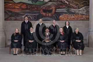 CIUDAD DE MÉXICO, 01SEPTIEMBRE2025.- Integración de la nueva Suprema Corte de Justicia de la Nación (SCJN): Hugo Aguilar Ortiz, ministro presidente, junto a los ministros Loretta Ortiz Ahlf; Lenia Batres Guadarrama; Yasmín Esquivel Mossa; María Estela Ríos González; Arístides Rodrigo Guerrero García; Giovanni Azael Figueroa Mejía; Irving Espinosa Betanzo y Sara Irene Herrerías Guerra. FOTO: NUEVA SCJN/NO VENTA SOLO USO EDITORIAL/CUARTOSCURO.COM