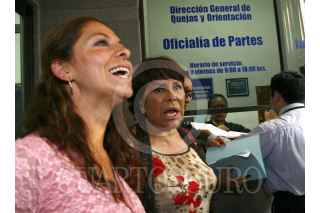 MÉXICO, D.F. 21NOVIEMBRE2007.- La lidereza de vendedores ambulantes del Centro Histórico, Alejandra Barrales acudió a la Comisión de Derechos Humanos del Distrito Federal acompañada de su hija, Graciela Barrales, para presentar una denuncia contra el procurador de justicia local Joel Ortega. FOTO: PAOLA HIDALGO/CUARTOSCURO.COM