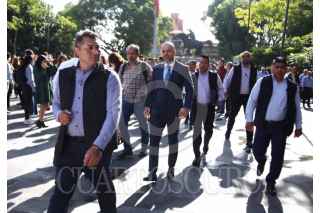 CUERNAVACA, MORELOS, 01SEPTIEMBRE2025.- Edgar Maldonado, fiscal general del estado de Morelos se retira de un evento acompañado de su guardia personal. FOTO: MARGARITO PÉREZ RETANA/CUARTOSCURO.COM