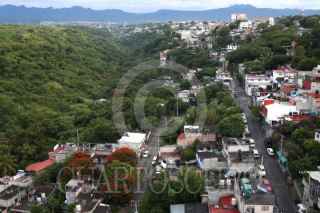 CUERNAVACA, MORELOS, 01SEPTIEMBRE2025.- Panorámica de la colonia popular Adolfo López Mateos, al sur de la capital, asentada en el margen derecho de la barranca del Pollo, en el lado izquierdo la flora característica de las lomas de la ciudad. FOTO: MARGARITO PÉREZ RETANA/CUARTOSCURO.COM