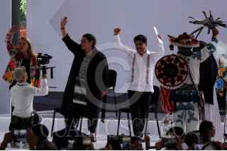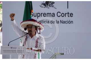 CIUDAD DE MÉXICO, 01SEPTIEMBRE2025.- Las ministras Loretta Ortiz Ahlf, Lenia Batres y el nuevo ministro presidente de la Suprema Corte de Justicia de la Nación, Hugo Aguilar Ortiz, durante Ceremonia de entrega de bastones de mando y de servicio a las ministras y ministros electos de la Suprema Corte de Justicia de la Nación (SCJN). FOTO: GALO CAÑAS/CUARTOSCURO.COM