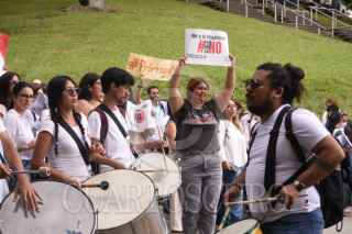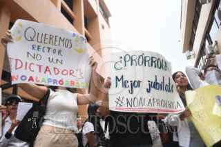 XALAPA, VERACRUZ, 01SEPTIEMBRE2025.- Estudiantes y ex rectores protestaron frente al edificio de Rectoría en rechazó a la prórroga a Martín Aguilar Sánchez para continuar dirigiendo la Universidad Veracruzana. Los inconformes bloquearon calles aledañas al campus. FOTO: YERANIA ROLÓN/CUARTOSCURO.COM