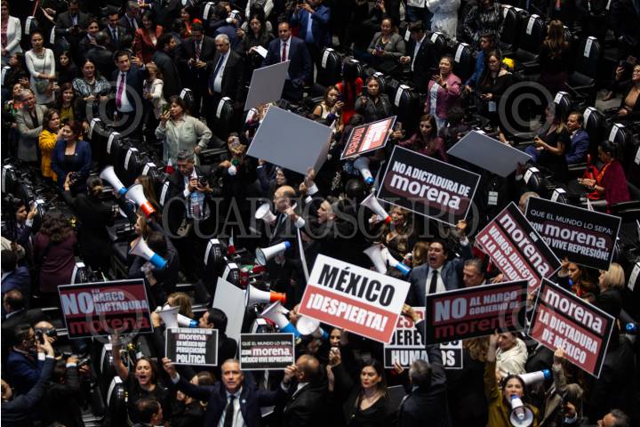 CIUDAD DE MÉXICO, 01SEPTIEMBRE2025.- Protesta del grupo parlamentario del PRI durante Sesión Congreso General inició del primer periódico de sesiones ordinarias del segundo año de ejercicio LXVI legislatura. FOTO: ANDREA MURCIA /CUARTOSCURO.COM