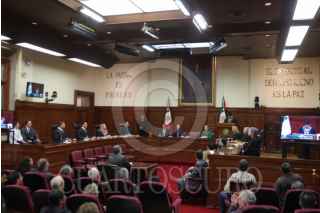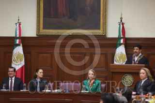 CIUDAD DE MÉXICO, 01SEPTIEMBRE2025.- Sergio Gutiérrez Luna, presidente de la Cámara de Diputados; la presidenta Claudia Sheinbaum Pardo, y Laura Itzel Castillo, presidenta del Senado de la República, acompañaron al magistrado presidente Hugo Aguilar Ortiz durante la sesión solemne de instalación de la nueva Suprema Corte de Justicia de la Nación, en la sede del Poder Judicial. Con ello arranca la primera integración elegida por voto popular, un hecho inédito en la historia contemporánea del país. FOTO: EDGAR NEGRETE LIRA/CUARTOSCURO.COM