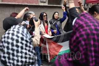 CIUDAD DE MÉXICO, 02SEPTIEMBRE2025.- Activistas pro Palestina acudieron a las oficinas de Atención Ciudadana de la Presidencia para presentar una solicitud de asilo, así como de ayuda médica y alimentaria para familias provenientes de Gaza. FOTO: DANIEL AUGUSTO/CUARTOSCURO.COM