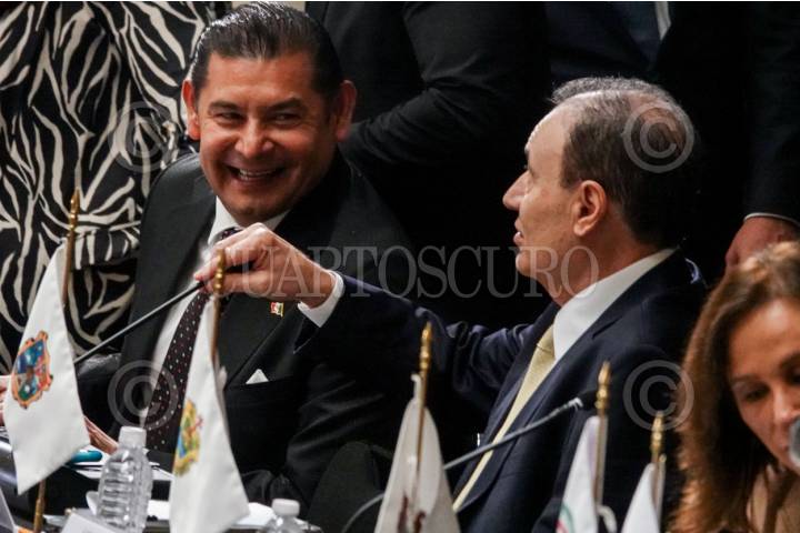 CIUDAD DE MÉXICO, 02SEPTIEMBRE2025.- Alejandro Armenta Mier, gobernador de Puebla, conversa con Alfonso Durazo, gobernador de Sonora, durante la instalación de la 51ª Sesión Ordinaria del Consejo Nacional de Seguridad en Palacio Nacional a la que acudieron las y los gobernadores de los 32 estados de la República. FOTO: GALO CAÑAS/CUARTOSCURO.COM