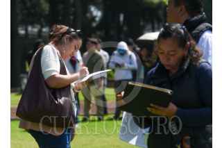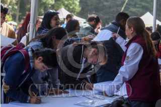 TOLUCA, ESTADO DE MÉXICO, 02SEPTIEMBRE2025.- Personas piden informes en los módulos de las empresas participantes en la Segunda Feria Regional del Empleo que tuvo como sede el Parque Metropolitano de Toluca, en donde a e ofrecieron más de 2 mil vacantes. FOTO: CRISANTA ESPINOSA AGUILAR/CUARTOSCURO.COM