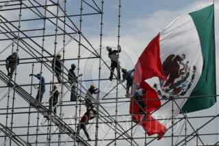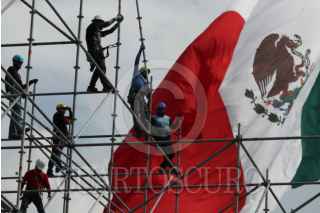 CIUDAD DE MÉXICO, 02SEPTIEMBRE2025.- En el marco de la preparación de las festividades de las fiestas patrias, trabajadores instalan andamios para el escenario principal en el Zócalo capitalino. FOTO: GRACIELA LÓPEZ/CUARTOSCURO.COM