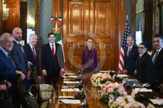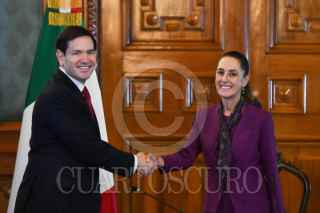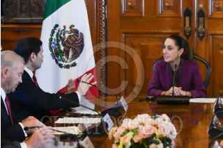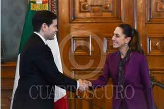 CIUDAD DE MÉXICO, 03SEPTIEMBRE2025.- Claudia Sheinbaum, presidenta de México, y Marco Rubio, secretario de Estado de los Estados Unidos, durante la reunión que sostuvieron en Palacio Nacional en la que se abordaron temas de seguridad, migración y comercio. Estuvieron presentes: Ronald Douglas Johnson, embajador de Estados Unidos en México; Juan Ramón de la Fuente, secretario de Relaciones Exteriores, Rosa Icela Rodríguez, secretaria de Gobernación; Omar García Harfuch, secretario de Seguridad y Protección Ciudadana. FOTO: MARIO JASSO/CUARTOSCURO.COM