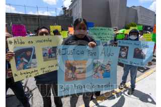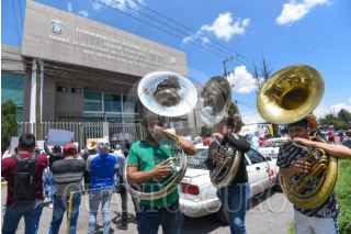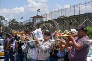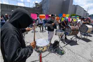 ALMOLOYA DE JUÁREZ, ESTADO DE MÉXICO, 03SEPTIEMBRE2025.- Al ritmo de la música familiares, amigos y compañeros de Aldo, Iván y Gerardo se manifestaron en las inmediaciones de los Juzgados de Control de Almoloya de Juárez; acusados por extorsión sus familiares piden justicia. Originarios de este municipio, trabajan en choferes de taxis y músicos, sus conocidos exigen su libertad. FOTO: CRISANTA ESPINOSA AGUILAR/CUARTOSCURO.COM