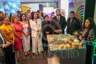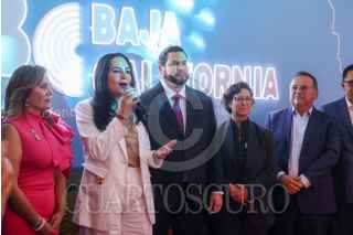CIUDAD DE MÉXICO, 03SEPTIEMBRE2025.- María del Rocío Adame Muñoz, presidenta municipal de Playas de Rosarito; Miguel Aguiñiga Rodríguez, subsecretario de Turismo; Zaida Luz López Sánchez, secretaria de Turismo de Baja California; y Claudia Lisbeth Moreno Ramírez, diputada federal, durante la inauguración de la exposición “Baja California; donde lo ordinario se hace extraordinario”, en Punto México de la Secretaría de Turismo. En la muestra se pueden conocer artesanías típicas del estado y sus famosos vinos. FOTO: MOISÉS PABLO/CUARTOSCURO.COM