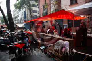 CIUDAD DE MÉXICO, 04SEPTIEMBRE2025.- Inquilinos desalojados el pasado 28 de agosto del edificio de República de Cuba 11, en el Centro Histórico realizaron conferencia de prensa para hablar sobre el proceso legal que lleva el predio. FOTO: ANDREA MURCIA /CUARTOSCURO.COM