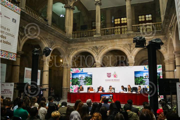 CIUDAD DE MÉXICO. 04SEPTIEMBRE2025.- La jefa del Gobierno de la Capital, Clara Brugada Molina; encabezó la conferencia "México por el clima", reunion con ambientalistas para analizar sus propuestas en esta materia. FOTO: VICTORIA VALTIERRA/CUARTOSCURO.COM