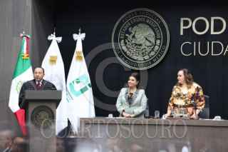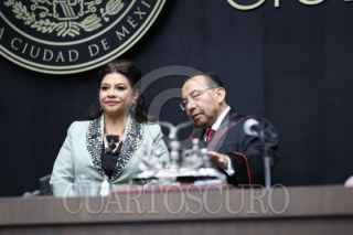CIUDAD DE MÉXICO, 04SEPTIEMBRE2025.- Rafael Guerra Álvarez, magistrado presidente del Tribunal Superior de Justicia de la Ciudad de México (TSJCDMX) y Clara Brugada, jefa de Gobierno, durante la ceremonia de imposición de toga a cinco magistradas y magistrados del Tribunal de Disciplina Judicial; a 34 magistradas y magistrados y a 98 juezas y jueces del órgano judicial capitalino. FOTO: GOBIERNO DE LA CIUDAD DE MÉXICO/CUARTOSCURO.COM