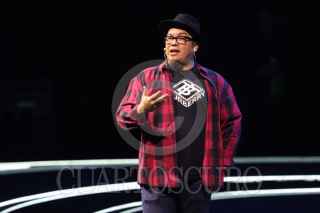 CIUDAD DE MÉXICO, 05SEPTIEMBRE2025. El comediante Franco Escamilla durante el evento de Fundación Telmex Telcel “México Siglo XXI #MSXXI”, el encuentro anual de Fundación con sus becarios, en el Auditorio Nacional. FOTO: EDGAR NEGRETE LIRA/CUARTOSCURO.COM