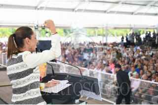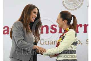 LEÓN, GUANAJUATO, 05SEPTIEMBRE2025.- Libia Denisse García Muñoz Ledo, gobernadora de Guanajuato, Claudia Sheinbaum Pardo, presidenta de México, y Rosa Icela Rodríguez, secretaria de Gobernación, durante el evento La Transformación Avanza cómo parte de su gira con motivo de su primer año de gobierno. FOTO: PRESIDENCIA/CUARTOSCURO.COM