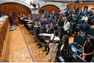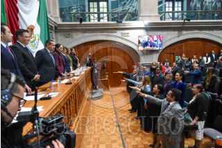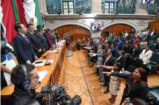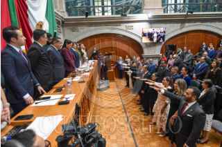 TOLUCA, ESTADO DE MÉXICO, 05SEPTIEMBRE2025.- Toma de protesta de 91 personas magistradas y juzgadoras que formarán parte del Poder Judicial del Estado de México ante la LXII Legislatura local, Delfina Gómez Álvarez, Gobernadora del Estado de México y Héctor Macedo García, presidente del TSJEM, durante la Sesión del Primer Periodo Ordinario de Sesiones del Segundo Año legislativo. FOTO: CRISANTA ESPINOSA AGUILAR/CUARTOSCURO.COM
