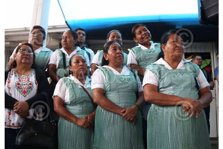 TEMIXCO, MORELOS, 05SEPTIEMBRE2025.- Conmemoración del Día Internacional de la Mujer Indígena por parte del gobierno del estado en la Escuela Primaria Miguel Othón de Mendizábal, en la comunidad de Cuentepec. El evento consistió en un maratón de lectura estuvo encabezado por el secretario de Educación Mario Delgado y la gobernadora Margarita González Saravia. En la imagen, maestras indígenas. FOTO: MARGARITO PÉREZ RETANA/CUARTOSCURO.COM