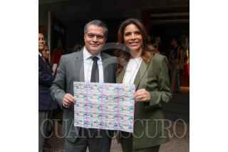 CIUDAD DE MÉXICO, 05SEPTIEMBRE2025.- Olivia Salomón, directora general de la Lotería Nacional, encabezó la develación del billete conmemorativo de la Semana de la Salud en la sede de la Lotenal. FOTO: LOTERÍA NACIONAL/CUARTOSCURO.COM