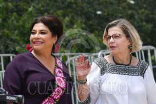 CIUDAD DE MÉXICO, 06SEPTIEMBRE2025.- Clara Brugada, jefa de Gobierno, y Nadine Gasman, secretaria de Salud de la capital, durante su llegada a la inauguración de la Semana Nacional de Salud Pública "Unidos por tu salud, construyendo bienestar", en la explanada del Monumento a la Revolución, donde destacó la aplicación de la vacuna contra el sarampión, entrega de cartillas de vacunación, y pruebas de detección de enfermedades crónicas. FOTO: MARIO JASSO/CUARTOSCURO.COM
