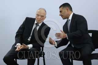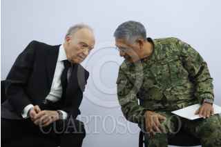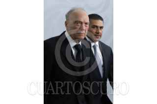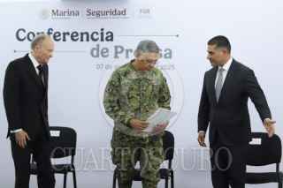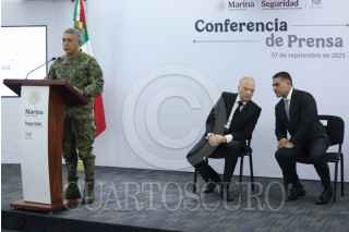 CIUDAD DE MÉXICO, 07SEPTIEMBRE2025.- El Fiscal General de la República (FGR), Alejandro Gertz Manero, se retira de la conferencia de prensa acompañado por el secretario de Seguridad y Protección Ciudadana, Omar García Harfuch. FOTO: DANIEL AUGUSTO/ CUARTOSCURO.COM