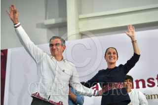 VICTORIA, TAMAULIPAS, 07SEPTIEMBRE2025.- Américo Villareal, gobernador de Tamaulipas, y Claudia Sheinbaum Pardo, presidenta de México, durante el evento “La Transformación Avanza”, en donde la mandataria ofreció parte de su Primer Informe de Gobierno, además de los proyectos venideros para el estado. FOTO: PRESIDENCI/CUARTOSCURO.COM