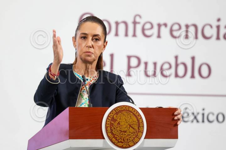 CIUDAD DE MÉXICO, 08SEPTIEMBRE2025.- Claudia Sheinbaum Pardo, presidenta de México, abordó el tema de los marinos y empresarios detenidos por contrabando de huachicol en puertos. Además, dio algunos detalles del paquete económico y, en este rubro, señaló que este año deben pagarse deudas de Pemex adquiridas durante el sexenio de Enrique Peña Nieto. Esto ocurrió durante la Mañanera del Pueblo. FOTO: MOISÉS PABLO / CUARTOSCURO.COM