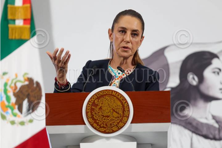 CIUDAD DE MÉXICO, 08SEPTIEMBRE2025.- Claudia Sheinbaum Pardo, presidenta de México, abordó el tema de los marinos y empresarios detenidos por contrabando de huachicol en puertos. Además, dio algunos detalles del paquete económico y, en este rubro, señaló que este año deben pagarse deudas de Pemex adquiridas durante el sexenio de Enrique Peña Nieto. Esto ocurrió durante la Mañanera del Pueblo. FOTO: MOISÉS PABLO / CUARTOSCURO.COM