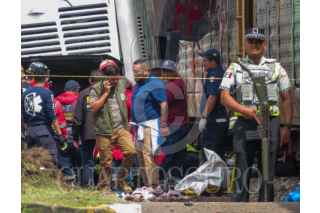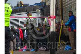 ATLACOMULCO, ESTADO DE MÉXICO, 08SEPTIEMBRE2025.- Servicios de emergencia y Servicio forense recuperan los cuerpos de las personas que fallecieron durante el accidente del tren que se llevó un camión de la línea Herradura de Plata en Atlacomulco. La zona permanece acordonada por policías estatales, municipales y GN. FOTO: CRISANTA ESPINOSA AGUILAR/CUARTOSCURO.COM