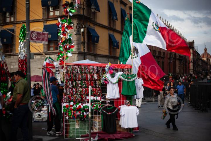 CIUDAD DE MÉXICO, 08SEPTIEMBRE2025.- Comienza la venta de artículos para fiestas patrias como sombreros, playeras, moños tricolores, banderas entre otras en las calles del primer cuadrante del centro histórico. FOTO: ANDREA MURCIA /CUARTOSCURO.COM
