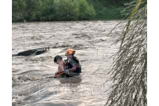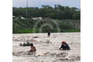 CADEREYTA, NUEVO LEÓN, 08SEPTIEMBRE2025.- Tras las fuertes lluvias que se registraron en Nuevo León, tres menores de 9, 14 y 15 años fueron rescatados de la creciente del río Santa Catarina a la altura del municipio de Cadereyta, a 70 kilómetros de la zona metropolitana de Monterrey. Los menores de edad fueron puestos a salvo por elementos de Protección Civil del estado, después de realizar maniobras con cuerdas. FOTO: PC NUEVO LEÓN / CUARTOSCURO.COM