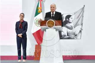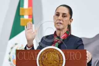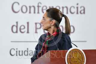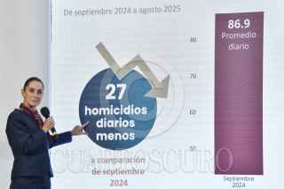 CIUDAD DE MÉXICO, 09SEPTIEMBRE2025.- Claudia Sheinbaum, presidenta de México, durante su intervención en la conferencia matutina realizada en Palacio Nacional donde expuso la comparativa de homicidios diarios desde que inicio su gobierno, indicando una reducción de 27 homicidios diarios menos. FOTO: MARIO JASSO/CUARTOSCURO.COM