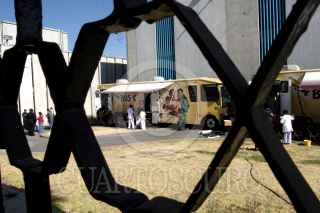 MÉXICO D.F. 26NOVIEMBRE2007.-Internas del reclusorio de Santa Martha, escuchan a los medios momentos antes de entrar a consulta con un doctor del "Medi-Bus" que tiene como proposíto brindar atención salud integral a la población interna de este centro. FOTO: GUILLERMO PEREA/CUARTOSCURO.COM